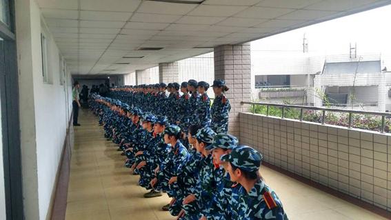 部分女学员在走廊军训