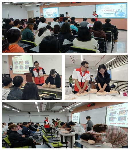 本次主题班会活动由重庆市红十字会急救师资培训师、后勤处校医院的徐忠诚医生主讲。徐医生生动有趣的专业讲解以及现场演练,使现场学生深入掌握了心肺复苏术、烧烫伤处理等急救知识与技巧,提升了他们应对突发状况的能力。主题活动得到了现场学生的广泛好评。其中21市营三班的杜莹同学表示,“这种主题班会形式特别新颖,互动性与实操性特别强。特别感谢学院举办了这次急救知识培训活动,最有收获是学习到了心肺复苏标准流程与正规动作。这是可以救命的稻草!”