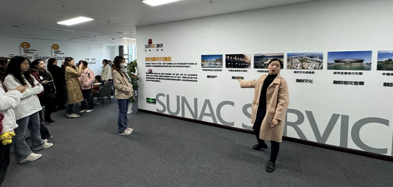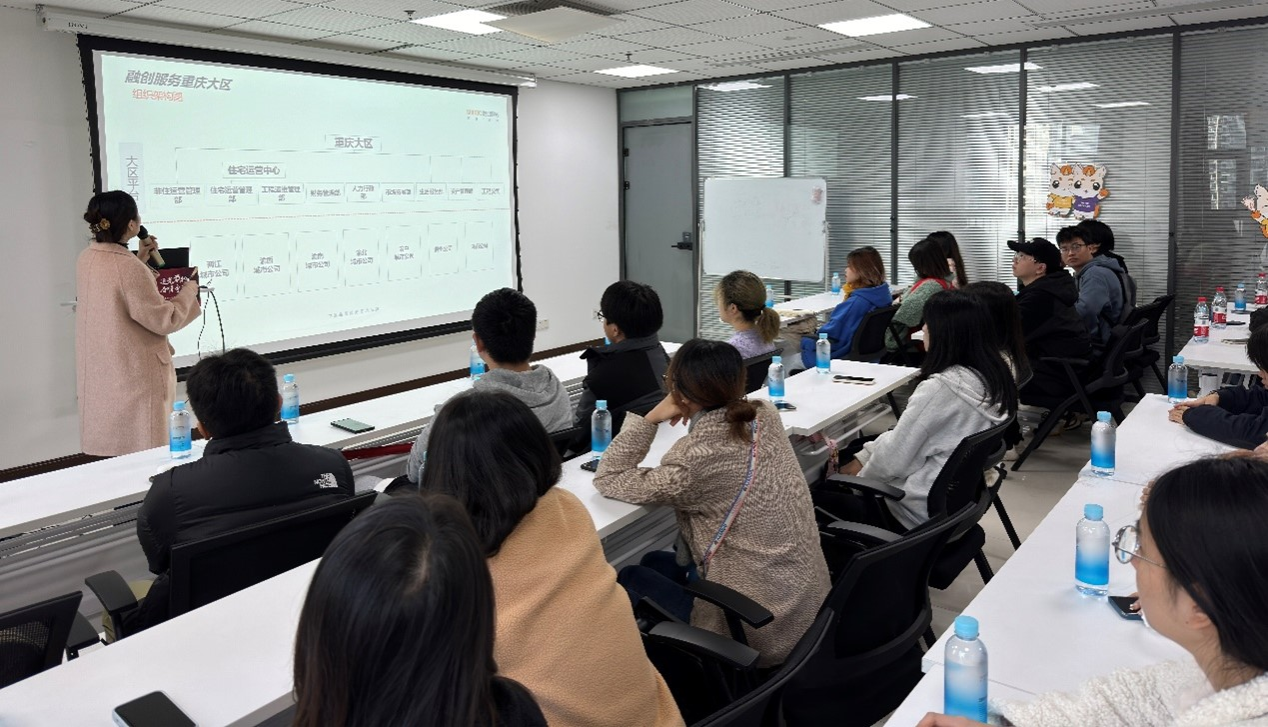 随后在公司会议室进行了一场主题分享。企业负责人向学生们详细介绍了融创服务重庆大区组织架构、业务板块与流程。还分享了企业在校企合作人才培养、员工关怀等方面的成功经验,引起了师生们浓厚的兴趣。