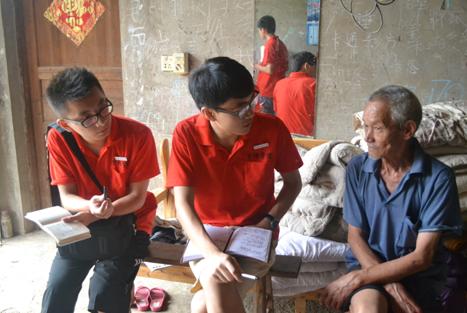 实践服务团成员同农民大伯拉家常