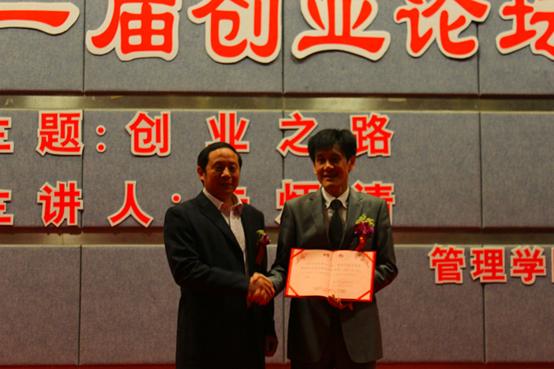 管理学院院长梅洪常教授对本届创业论坛活动进行了总体介绍。他提出,创业论坛不仅为学生提供一个了解企业的机会,也有利于为企业注入新活力。他希望同学们能够充分利用论坛分享创业历程,学习创业精神。而后,管理学院党总支段远鹏书记为朱柄清董事长颁发创业导师聘书,并签订协议。
