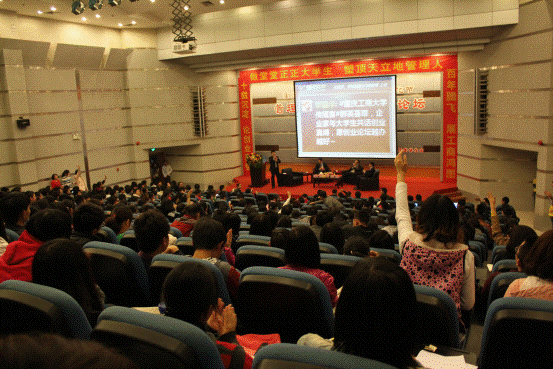 论坛上,杨全先生就“如何理解创业二字”、“怎样挖到第一桶金”、“创业过程中最难处理的关系”等问题与三位嘉宾展开讨论。尹传高先生以李小龙的创业模式为例,建议大学生应该在就业与创业中寻找平衡,在就业中打通创业渠道;孙焱枫先生认为大学生不妨“骑驴找马”,先就业后创业,并且在当前市场不完全规范的情况下,坚守道德底线;而王林先生在讨论中反复强调“千军易得,一将难求”,人才是企业的核心竞争力,并提醒大学生不要将创业看得过于狭隘,创业是一个缓慢的进程,在创业过程中要有一颗平常心。主持人与嘉宾睿智而风趣的应答赢得了观众热烈的阵阵掌声。