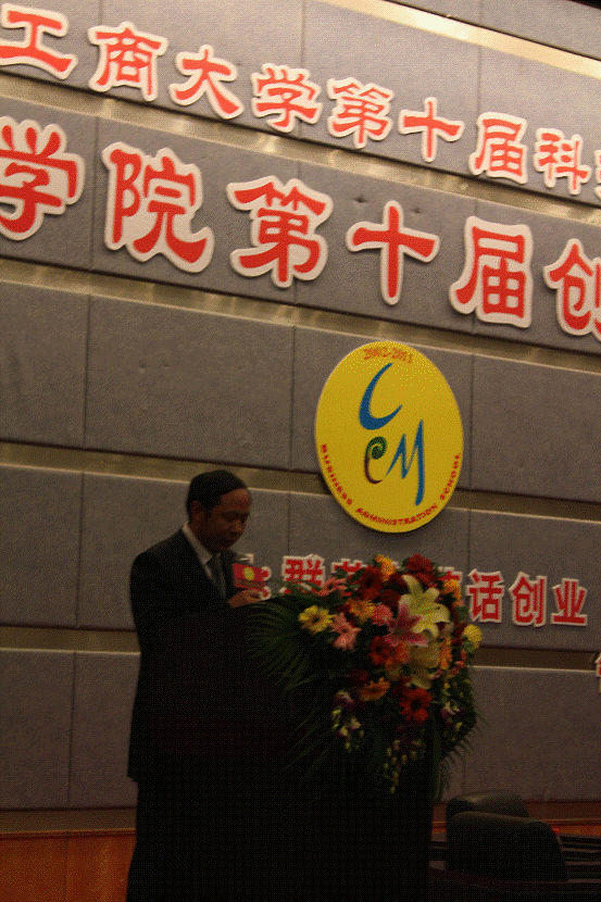 管理学院党总支书记段远鹏介绍第十届创业论坛