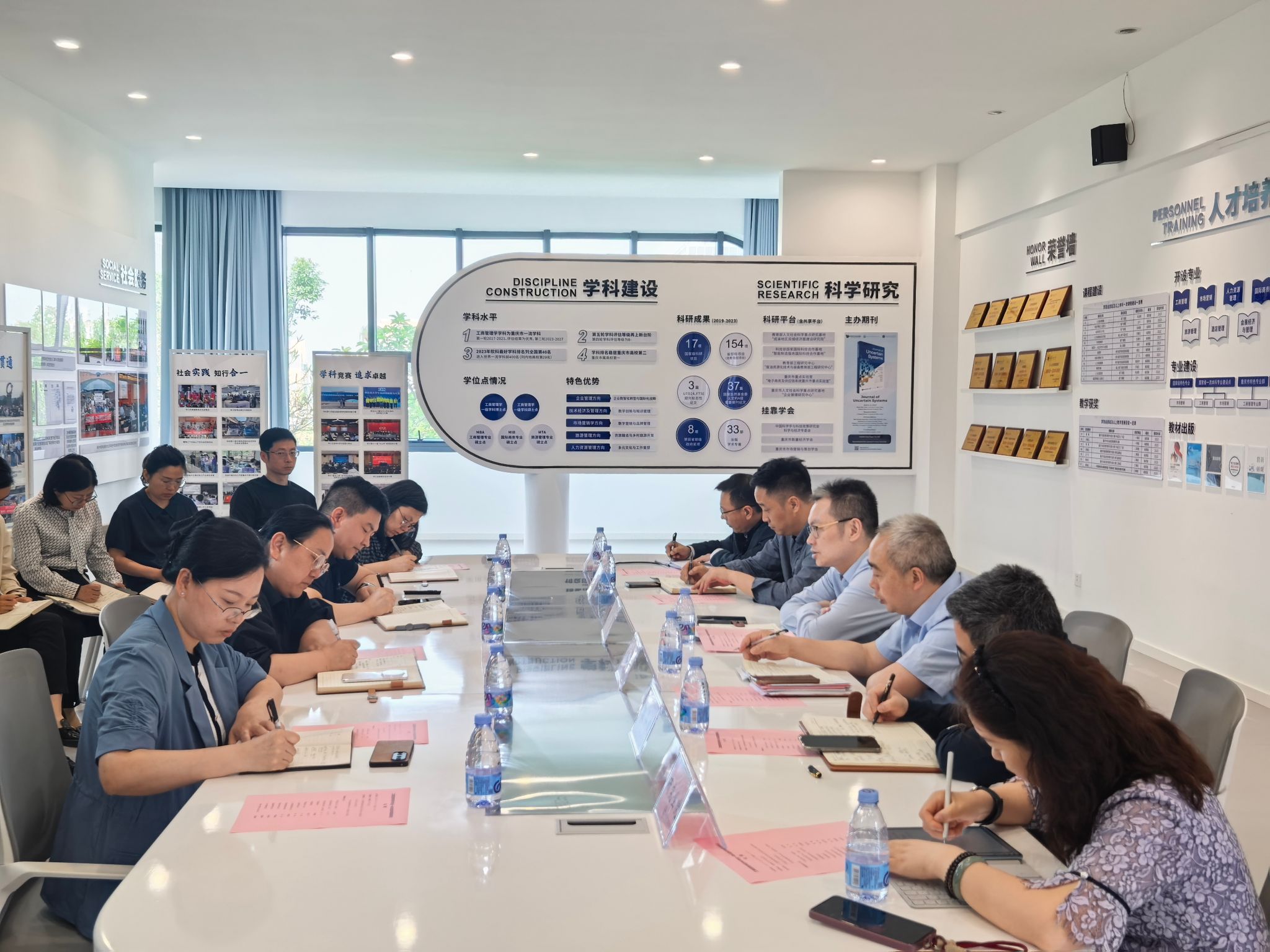 温涛校长一行首先参观了学院的文化墙,了解了学院近年来在学科发展、专业建设、学位点建设、科研团队建设、人才培养成效等方面情况,对学院取得的成绩给予肯定。学院院长陈伟分别围绕专业建设、学科建设、人才培养、师资建设、社会服务及学院未来规划几个方面进行了详细汇报。参会人员围绕博士点建设、学科交叉融合、高层次人才引进、创新人才培养等进行深入交流探讨,相关职能部门积极回应、逐一解答。