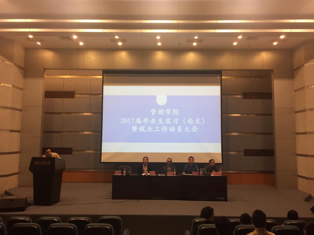 为了推动2017届毕业生更好地顺应社会的需求,11月14日下午14:30,管理学院2017届毕业生实习(论文)暨就业工作动员大会在我校博智楼7100学术报告厅成功召开。管理学院党总支书记王建明、副院长王兰、党总支副书记尹建平等领导老师出席大会。学团办主任卓志宏老师主持本次会议。