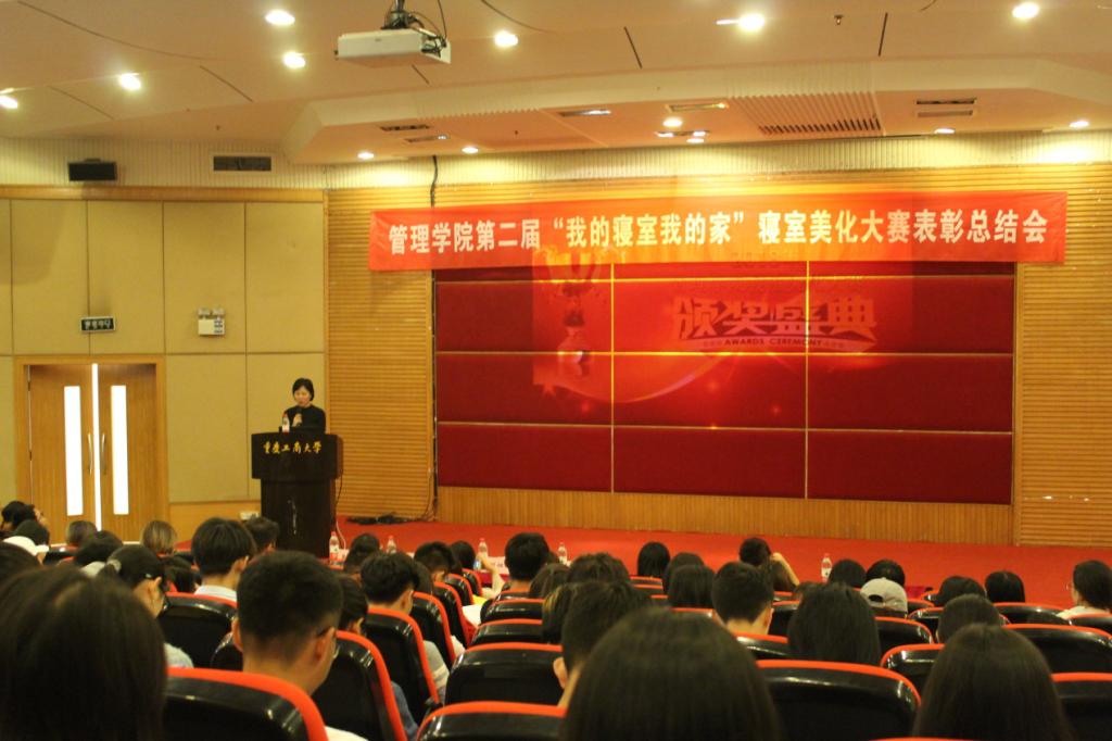 5月23日下午,管理学院在博智楼7200学术报告厅举行第二届“我的寝室我的家”寝室美化大赛总结暨表彰会。出席本次总结表彰会的有学院党委副书记、纪委书记王静、学团办主任谭予涵以及各专职辅导员、2015级和2016级各班学生代表、寝室美化大赛全体获奖人员,总结表彰会由管理学院楼管会主任聂树平老师主持。