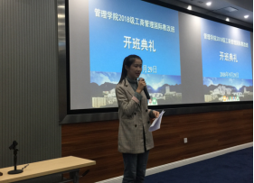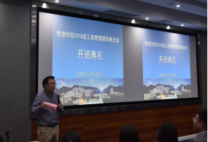 开班典礼由管理学院分党委王建明书记主持,参加典礼的领导和主要人员包括教务处处长靳俊喜教授、国际合作与交流处处长韩艳教授、招生就业处申卫东处长、通识学院党总支书记、院长包晓玲教授、学生处刘代成副处长、管理学院院长杨柏教授、副院长周莉教授、分党委王静副书记,任课教师代表王琳博士、管理学院国际部部分老师和辅导员以及全体2018级国际教改班新生。