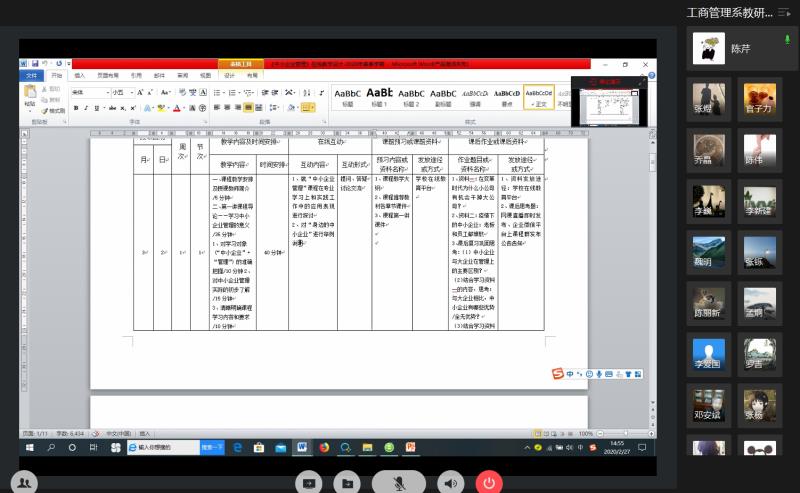 2020年3月2日,重庆工商大学开始了全面的在线教学。管理学院工商管理系教师第一天共有11人次的在线教学任务,全部都按时进行并顺利完成。老师们积极准备,提前演练,正式上课时熟练地运用企业微信、重庆工商大学在线教育平台、学习通、雨课堂等在线平台分享课件、讲课、互动,授课效果良好。老师们不断尝试在线教学方法并积极分享,相互借鉴,用群投票功能进行问答,用群填表功能进行测验,用学习通进行签到和随机提问。老师们积极与学生互动,学生积极配合,很活跃,参与度很高。
