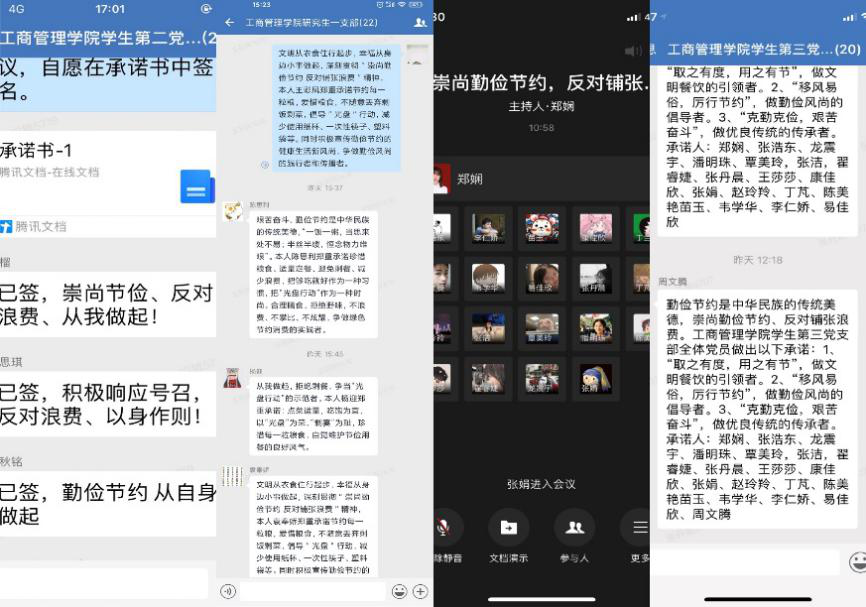 研究生支部发起“光盘有我,外卖点餐定量不浪费”行动,倡导从节约一粒米、一滴油等做起,并以此为契机把节约理念贯穿用电用水和学习生活各方面,创建节约型寝室,动员周围的同学、家人共同加入节俭行列,共同做“文明餐桌”的践行者、示范者和推动者,弘扬中华民族勤俭节约的传统美德。