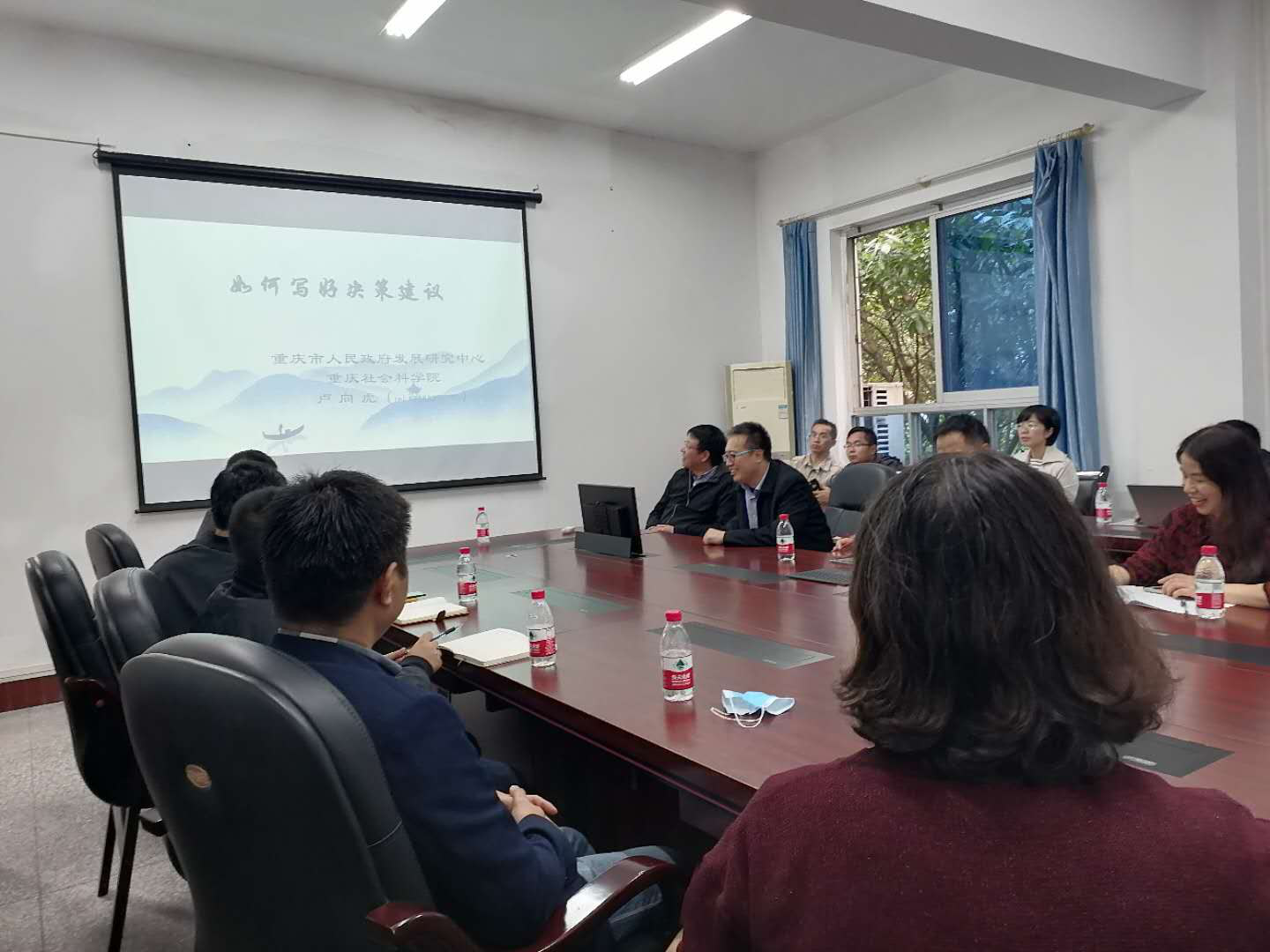 卢向虎处长以“如何开展调查研究和撰写资政报告”为题,首先介绍了智库建设处的基本情况、《决策建议》呈送范围、批示情况、批示件管理等的问题,然后从选题、写作范式、写作技巧等三个方面详细说明了如何写好一篇决策建议。