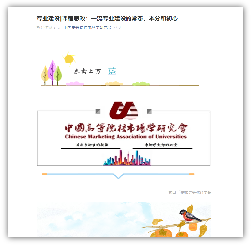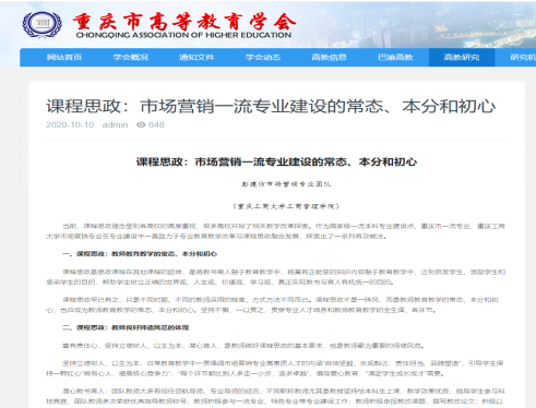 近日,中国高等院校市场学研究会、重庆市高等教育学会先后刊发122cc太阳集成游戏彭建仿教授及其市场营销专业团队关于市场营销一流专业建设与课程思政融合发展的相关探索与实践。
