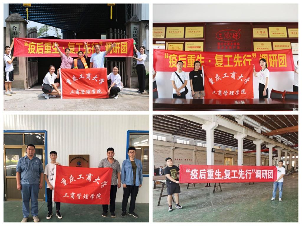 四支调研队采用集中分散相结合的模式,注重探索创新“互联网+社会实践” 新模式,鼓励师生采取“云组队”“云调研”“云访谈”等网络形式开展。“疫后重生,复工先行”主题调研队先后对重庆三好纸业有限公司、合川区雅新纸制品厂、洪泽区、博奥等多个企业进行了实地调研,了解其在疫情期间面临的最大困难以及解决方案、国家政策所给予的便捷、职工受疫情影响等情况。同时还深入商业街、走近地摊,了解地摊经济的发展状况,以及地摊摊主对地摊经济发展的看法和建议。学生运用人力资源管理、工商管理专业相关的用人、薪酬、工时等专业知识,调研疫情期间企业现状,助力疫情防控和复工复产。