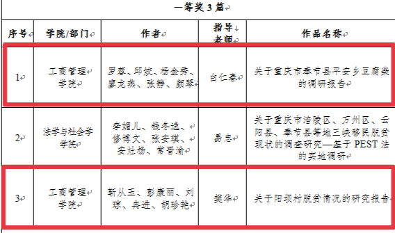 社会实践开展情况在今日头条、重庆晨报、大渝网、中国重庆网等省市级以上媒体共计报道352篇,其中在国家级媒体报道206 篇,在省市级媒体141篇。共形成716份社会实践调研报告,在学校校团委举办的社会实践调研报告作品大赛中,由白仁春老师指导的《关于重庆市奉节县平安乡豆腐柴的调研报告》和樊华老师指导的《关于阳坝村脱贫情况的研究报告》,荣获学校2020年暑期“三下乡”社会实践调研报告作品大赛一等奖。2篇“我的返家乡实践故事”入围团中央优秀实践报告。