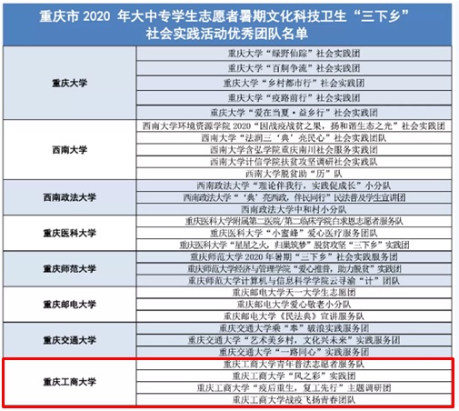 为鼓励大学生感受大疫重生后的社会面貌和社会现状,鼓舞全民积极投入疫后复工复产工作,加快恢复人民的正常生活,推动经济发展,重庆市于2020年举办了大中专学生志愿者暑期文化科技卫生“三下乡”社会实践活动。重庆工商大学122cc太阳集成游戏“疫后重生,复工先行”主题调研团在此次活动中表现优异并且荣获了优秀团队的荣誉。