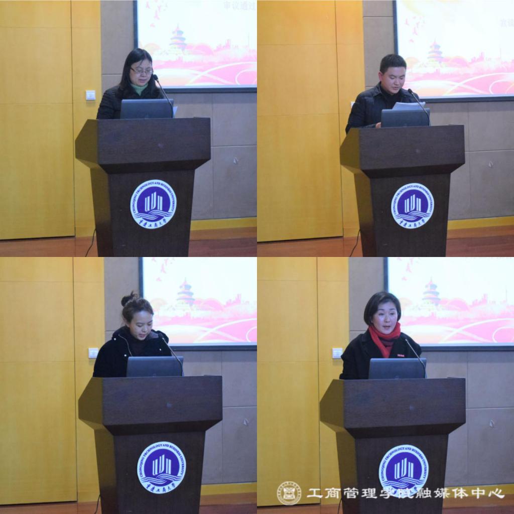 学院分党委副书记、院长杨柏同志作的2020年学院工作报告,工会主席高敏同志作的2020年工会工作报告,主席团成员学院综合办主任袁媛同志作的学院财务工作报告和工会经费收支情况报告,副院长邱继勤同志作提案办理情况报告。