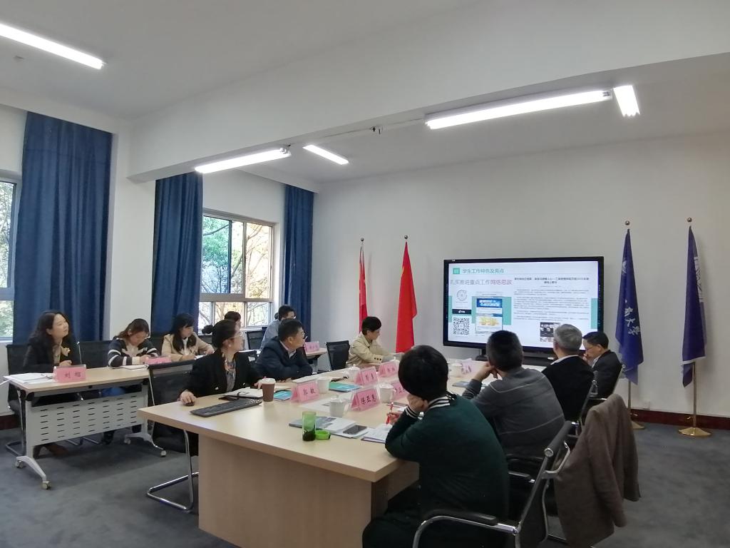首先122cc太阳集成游戏党委副书记郭敏汇报了学院学生工作开展情况。郭敏同志从学院学生概况、学生工作特色及亮点、目前存在的问题和解决思路四个方面进行了汇报,并对学院下一步构建“三全育人”工作机制、全面推进学风建设等学生工作进行了展望。