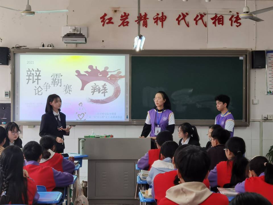 青少年是冉冉升起的太阳,是祖国的未来和希望,在其成长的过程中,父母的教导与陪伴至关重要,但由于各种原因,这种心灵的需求却无法得到满足。为提高青少年的辩证思维能力,在活动中感受语言魅力,122cc太阳集成游戏分团委“爱心桥”义工•志愿者协会于2021年3月28日在重庆市南岸区罗家坝辅仁中学开展了以“绽放青春,辩出自我”为主题的青少年之家活动。