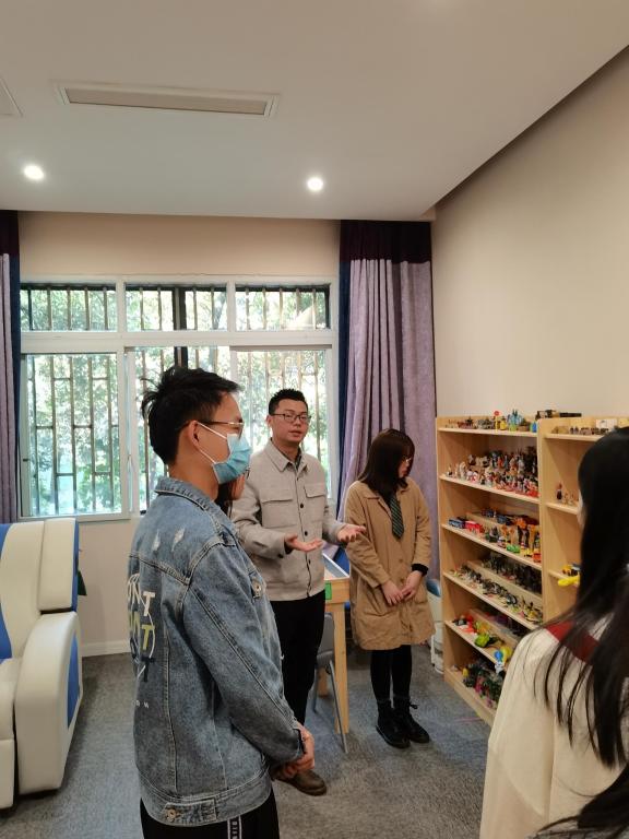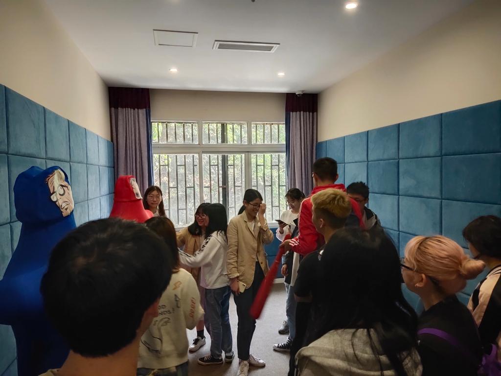 活动中,周明老师带领着同学们参观了心理健康教育与咨询中心,为同学们介绍了中心历史、简介、工作情况和教师团队。参观过程中,老师们详细介绍了预约接待室、心理测评室、情绪宣泄室、团体心理训练室、个体心理咨询室、沙盘游戏室等功能室的用途。其中情绪宣泄室内的“仿真宣泄人”以及“智能呐喊宣泄仪”、心理沙盘、音乐放松按摩椅等专业有趣的设备吸引了大家积极体验。