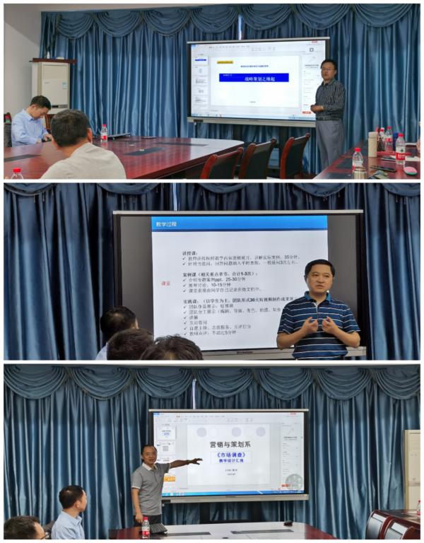 首期活动于5月21日下午在明德楼3021会议室举行,由强海涛、刘清华和樊华三位老师分别就《战略策划》、《新媒体营销》与《市场调查》三门主讲课程进行说课,内容主要为各门课程的定位与目标、课程内容、教学过程与方法以及教学效果。三位老师也分享了创新的考核方式、典型的教学案例和优秀的学生作业作品,并提出了自己教学方面的思考、困惑与问题,与在座的全系老师进行交流与讨论。通过广泛与深入的讨论,促进了教师互相合作交流与学习,帮助各位老师特别是青年教师能在切磋教艺、交流教学经验中获益和成长。