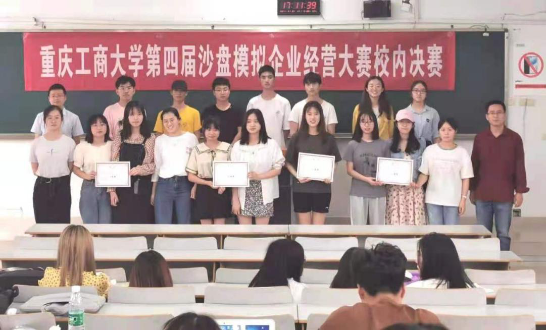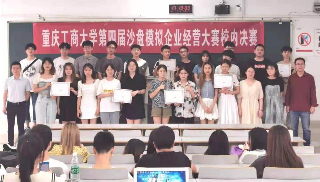2021年6月6日,重庆工商大学第四届沙盘模拟企业经营大赛决赛在博智楼07306顺利举行。本次比赛由122cc太阳集成游戏分团委主办,122cc太阳集成游戏工商管理系未来经理人协会承办,新道科技股份有限公司提供技术支持,也是落实工商管理一流专业建设计划的重要赛事。工商管理系主任郑月龙副教授、系副主任王永龙副教授参加并指导了决赛活动。