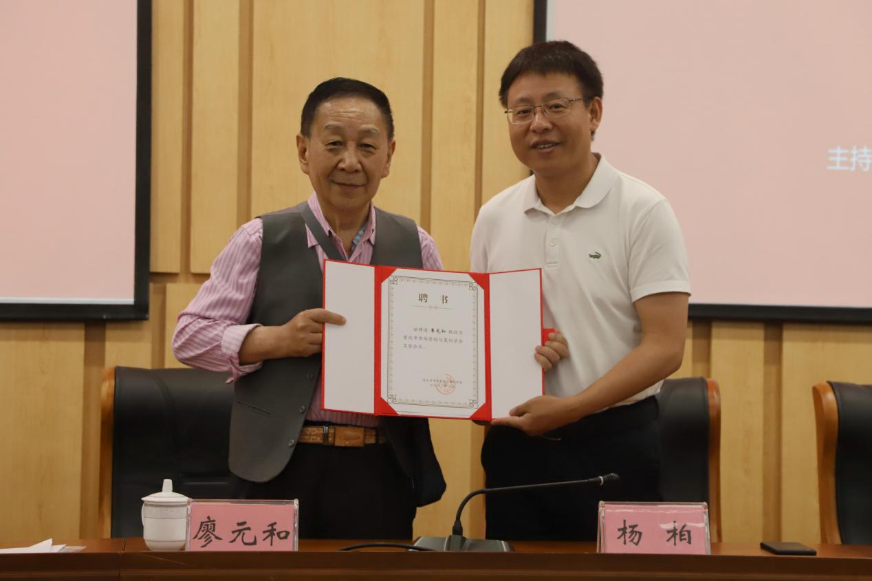 122cc太阳集成游戏院长杨柏为原会长廖元和颁发名誉会长证书