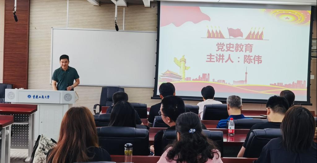 党课中,陈伟副院长以历届党代会的召开时间为切入点,归纳了共产党人的政治智慧,并强调要党在发展中始终以人民群众为中心,走群众路线。他强调学院对课程思政工作十分重视,尤其工商管理系教师要把专业教学和课程思政有机结合起来。希望各党员教师加强党史教育与专业教育相结合的意识,加强团队协同,更好的适应新形势下工商管理学科的育人工作。