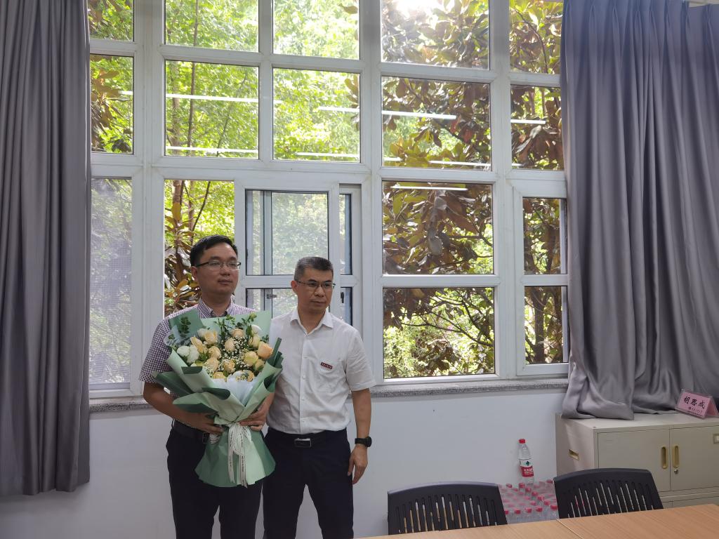 李校长与熊老师亲切交谈,详细了解了他的工作和生活情况,感谢他为学校人才培养、学科建设、科学研究方面付出的智慧和汗水。同时,鼓励他继续弘扬爱岗敬业精神,立足岗位、忠于职守,无私奉献、甘为人梯,认真钻研业务知识,继续发挥专业特长,积极构建特色专业,搭建科研梯队,努力为社会培养更多有用之才。