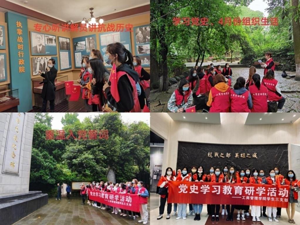 4月16日下午,学生三支部全体师生党员赴重庆抗战遗址博物馆,瞻仰革命遗址,学习革命精神,举办以“参观红色革命基地,开展党史学习教育”为主题的党史学习教育研学活动。通过“看”“学”“听”“讲”“感”,深入践行党史学习教育,进一步深入开展革命传统教育和爱国主义教育。全体党员们聆听了抗战遗址背后的故事,感受战火纷飞的年代中革命先辈顽强拼搏的抗战精神,感受这座“愈炸愈强”的英雄之城背后的艰苦与不屈精神;来到台湾光复纪念碑前重温入党誓词,用誓言表达了对党的无限忠诚和崇高敬意。