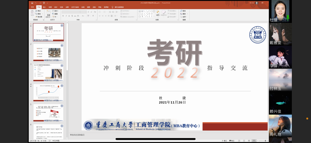 余位有考研意向的同学参与分享,会议由戴雅雯同学主持。