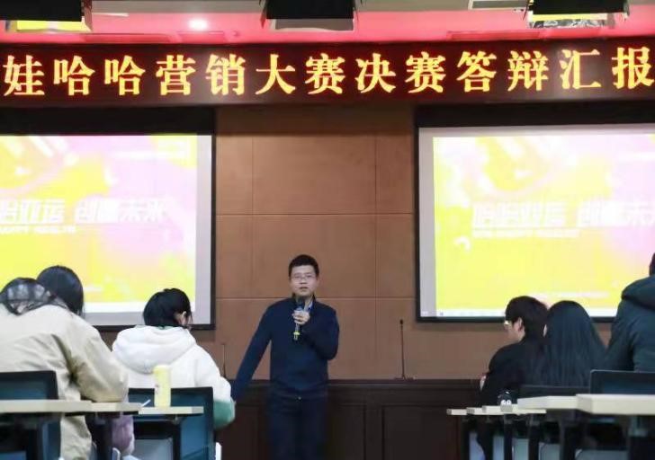 2021年12月10日晚7:00,图书馆多功能厅热闹非凡。由杭州娃哈哈公司发起,122cc太阳集成游戏分团委主办,未来经理人协会承办的第十四届娃哈哈营销大赛决赛在此隆重举行。