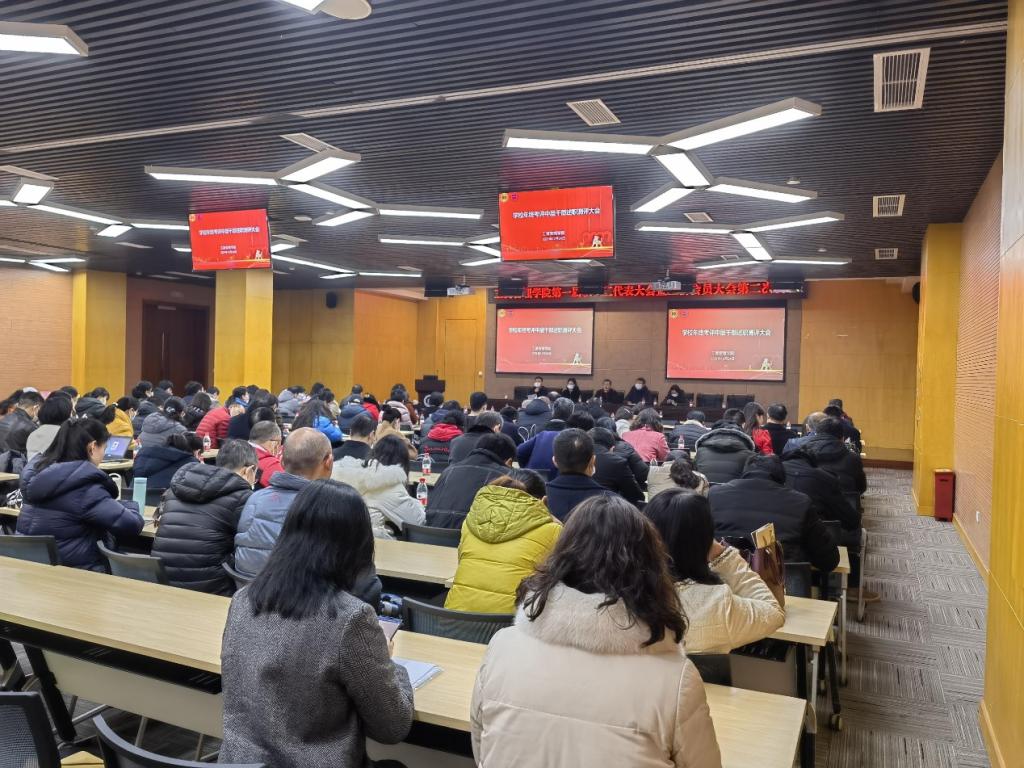 12月24日下午3:00,122cc太阳集成游戏在图书馆多功能厅召开了第一届教职工代表大会暨工会会员大会第二次会议,学院全体教职工参加了本次会议,会议由学院党委书记彭勇主持。会议收到了学校工会《致122cc太阳集成游戏第一届二次“两代会”贺信》