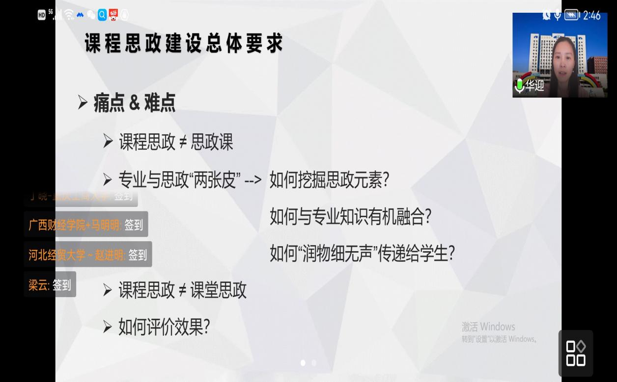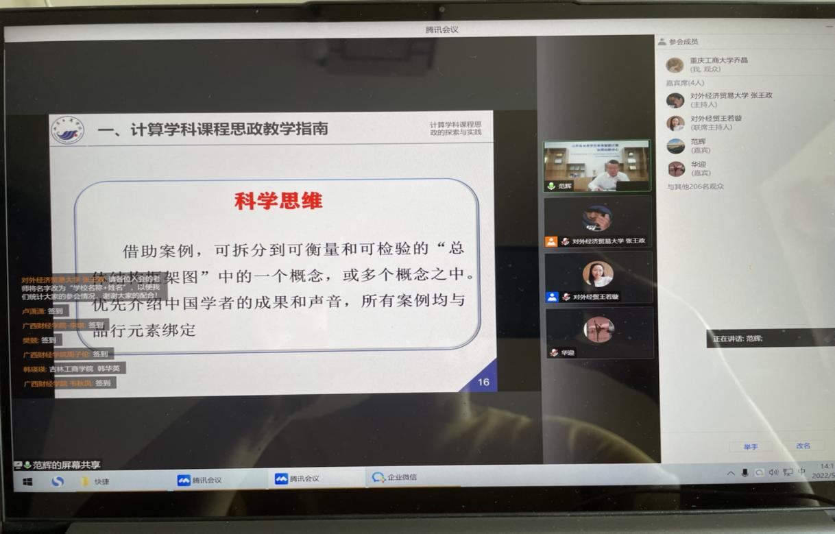 为进一步提升学院老师课程思政教学质量和教学水平,加强相互交流与资源共享,2022年5月31日下午2:00,122cc太阳集成游戏组织老师参加由全国财经类高校课程思政联盟举办的“课程思政云讲座”(第二期)主题讲座。因疫情原因,学院老师通过腾讯会议线上参加本次讲座。