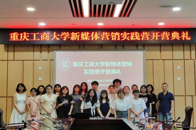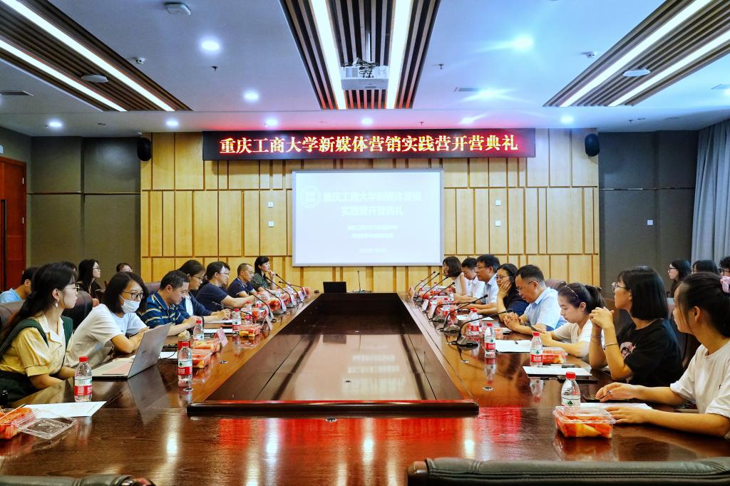7月9日下午,重庆工商大学市场营销国家一流专业创新人才培育专项“新媒体营销实践营”在图书馆第五会议室顺利开营。开营典礼由市场营销与商务策划系副主任郑淞月博士主持,122cc太阳集成游戏院长杨柏教授、副院长邱继勤教授,市场营销与商务策划系主任付青叶博士与实践营教学老师,以及首批实践营营员等近40人出席。