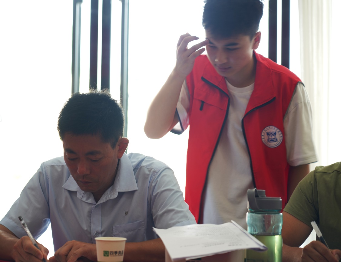 新型农业经营主体主要分为农业企业、家庭农场专业大户、农民合作社三个类型。通过村支书的宣传和邀请,部分新型经营者来到万胜村生态园接受问卷调查。首先,发展成就观察团成员向各新型经营主体负责人派发问卷,主要由负责人自主填写,发展成就观察团成员辅助填写。内容围绕基础信息资料、生产经营成本、销售状况、生产条件改进、土地流转、机械化生产、销售宣传方式、绿色生态技术等方面进行问卷调查;在问卷填写过程中,发展成就观察团成员深刻体会到“先富带动后富”“大户牵头散户”的重要性,有专业的农业公司引资投入,使得万胜村的茶叶、花椒等有机械化生产的可能性和贸易的前景,大户承包流转土地,使得荒废土地利用率增高,碎片化土地能集中规模化生产,农民合作社增加务农辐射范围,带动偏远地区农户参与生产。除了对新型农业经营主体的认识,观察团成员更看到红炉镇的发展成就,人才回乡、产业入乡、经济进乡成为乡村发展的大趋势。