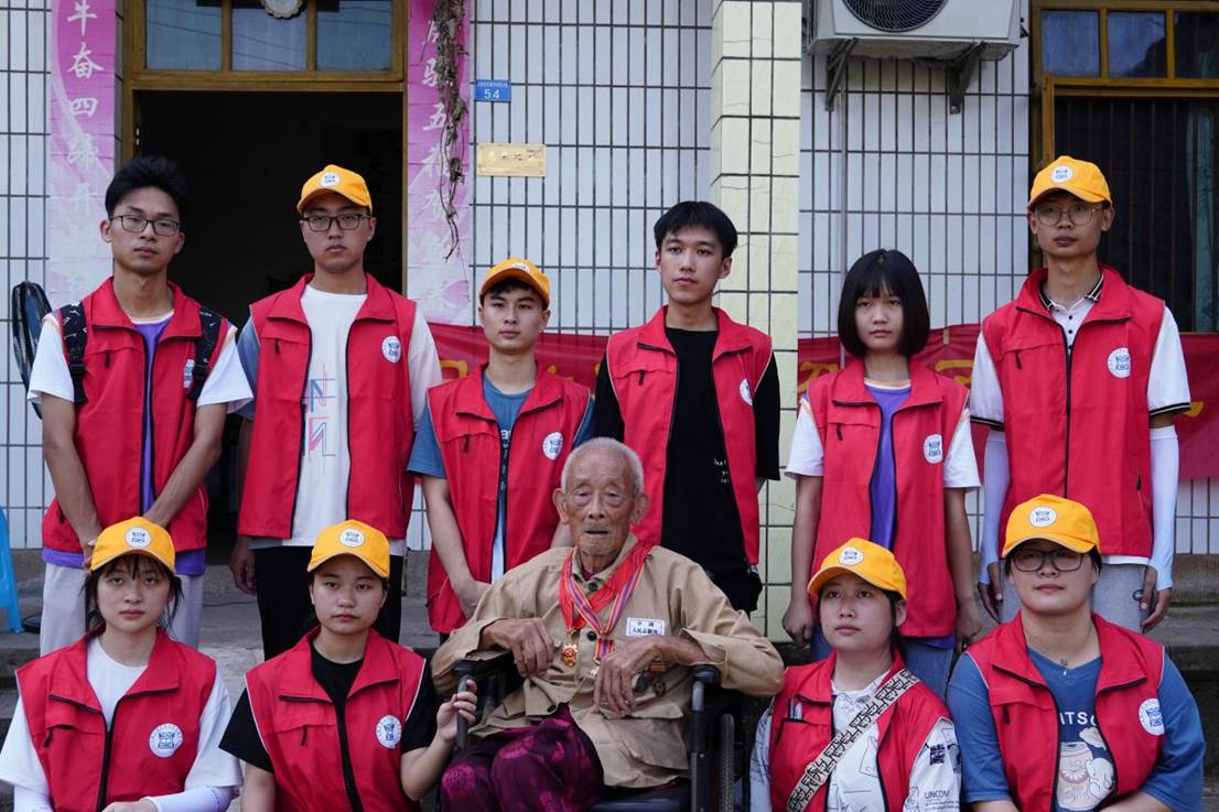在实践团队临走之际,康绍舟老人穿上中国人民志愿军军装,带上熠熠生辉的勋章与观察团合影留念,在那一刻,观察团每一位成员的眼眶湿润了,“事了拂衣去,深藏身与名”。康绍舟老人把他的青春岁月倾洒在了保家卫国的沃土,如今隐居山村,安享晚年。