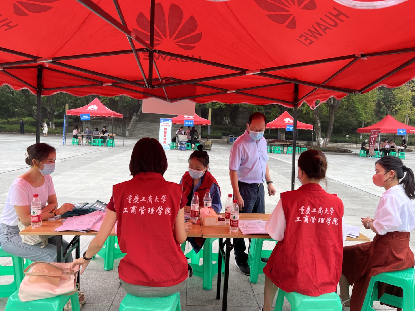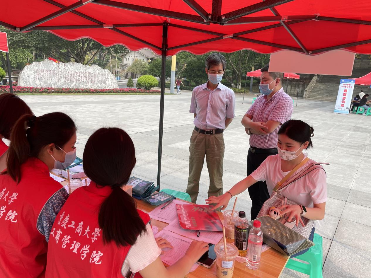 学院陈伟副院长、研究生辅导员纪念老师、袁娅婷老师等均到现场迎新。报到过程中,重庆工商大学党委副书记、校长孙芳城,党委常委、副校长张波,党委常委、副校长李国军等校领导在研究生院副院长邓龙奎的陪同下,到我院迎新现场指导工作,高度赞扬我院有序的迎新报到工作。