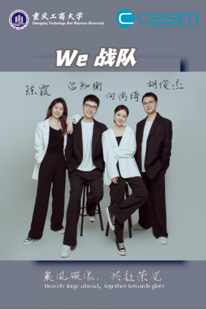 We战队成员陈露、胡俊杰、吕知衡、向禹绮(按拼音首字母排序)均为重庆工商大学MBA学生,他们以“踏风而来、共赴荣光”为战队口号,秉承“We are a team”的团队信念,参加了第十五届“尖烽时刻”全国商业模拟大赛。