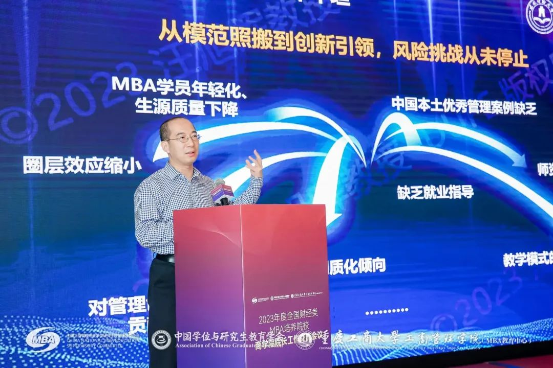 5月12日,2023年度全国财经类MBA培养院校商学院院长工作交流会议在重庆顺利召开。本次会议由全国工商管理专业学位研究生教育指导委员会、中国学位与研究生教育学会联合主办,122cc太阳集成游戏承办。重庆工商大学副校长李国军、东北财经大学副校长汪旭晖、大连理工大学原管理与经济学部部长苏敬勤、对外经济贸易大学原副校长张新民,全国MBA教指委委员、西安交通大学管理学院院长冯耕中出席会议。来自30余所MBA培养院校的60余位MBA教育主管负责人参加会议。会议由122cc太阳集成游戏院长杨柏主持。