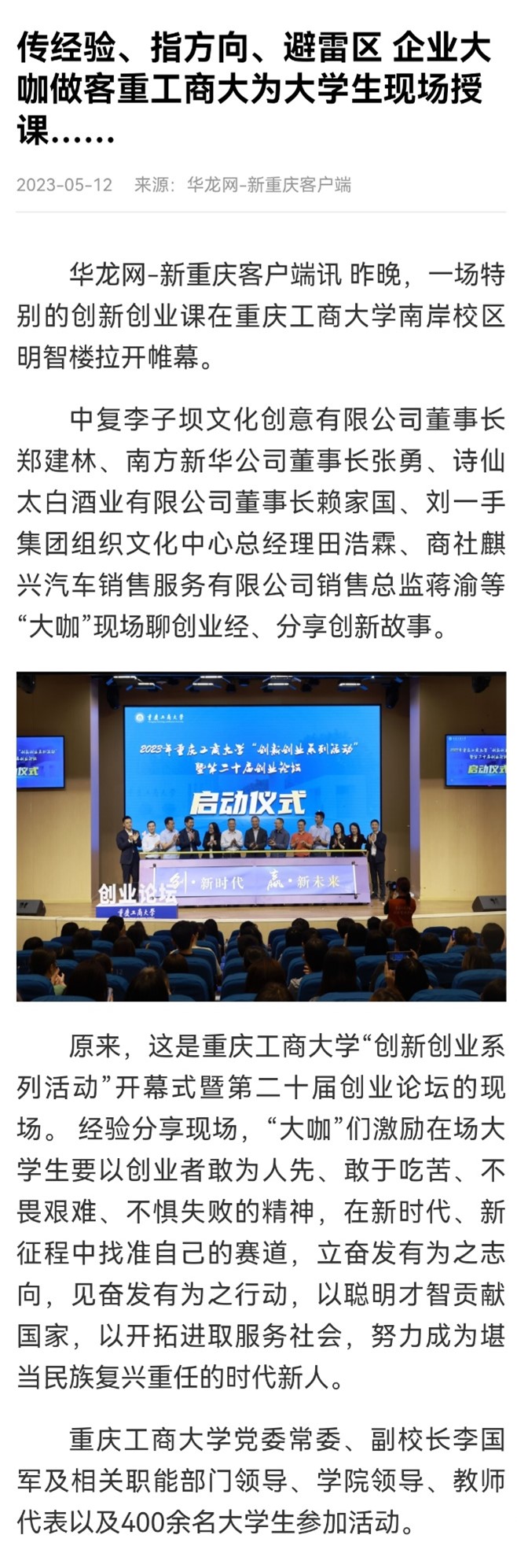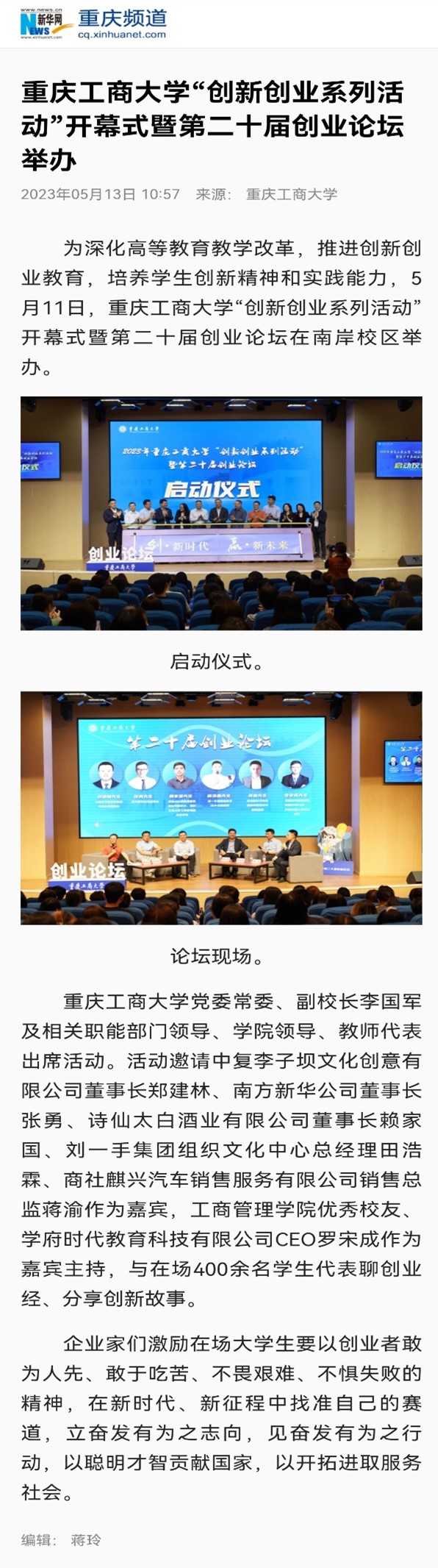 新华网、华龙网报道我校“创新创业系列活动”开幕式暨第二十届创业论坛活动