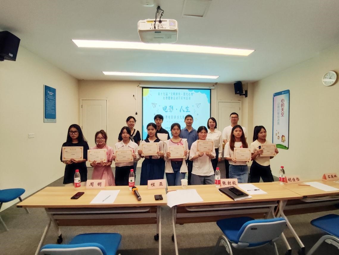 5月19日下午,“让电影启迪人生”心理电影讲述大赛决赛在大学生心理健康教育与咨询中心开展,党委学工部学生处副处长张朝毅、122cc太阳集成游戏党委副书记程亚、大学生心理健康教育与咨询中心主任胡佳怡、党委宣传部(新闻中心)石薇琳、122cc太阳集成游戏心理工作站指导老师周明莅临本次活动并担任评委。