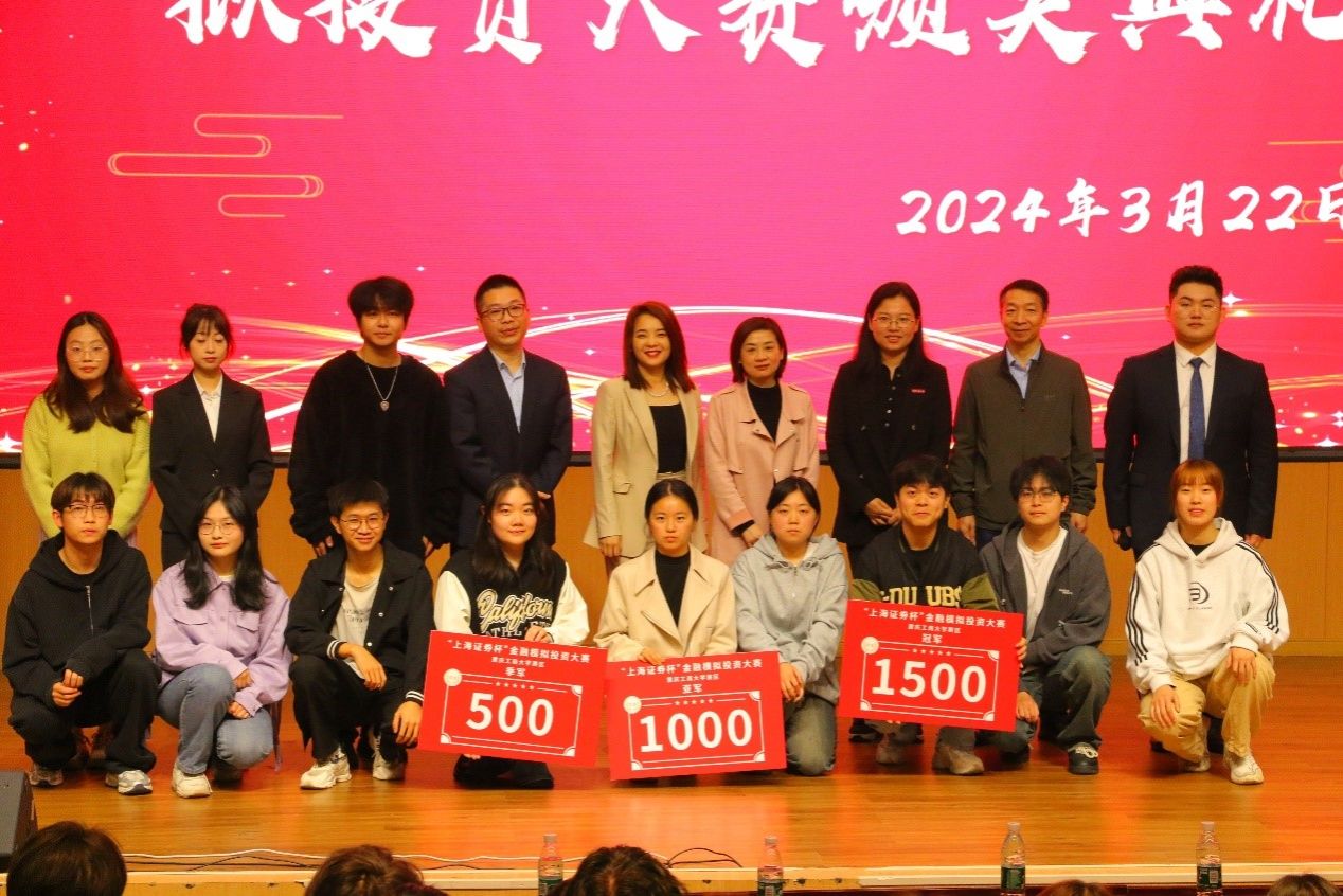 最后,与会嘉宾和获奖同学共同合影留念,留下了这一难忘的时刻。此次颁奖典礼的圆满落幕,标志着“上海证券杯”大学生金融模拟投资大赛的成功举办,也预示着重庆工商大学在培养金融人才方面将迈出更加坚实的步伐。