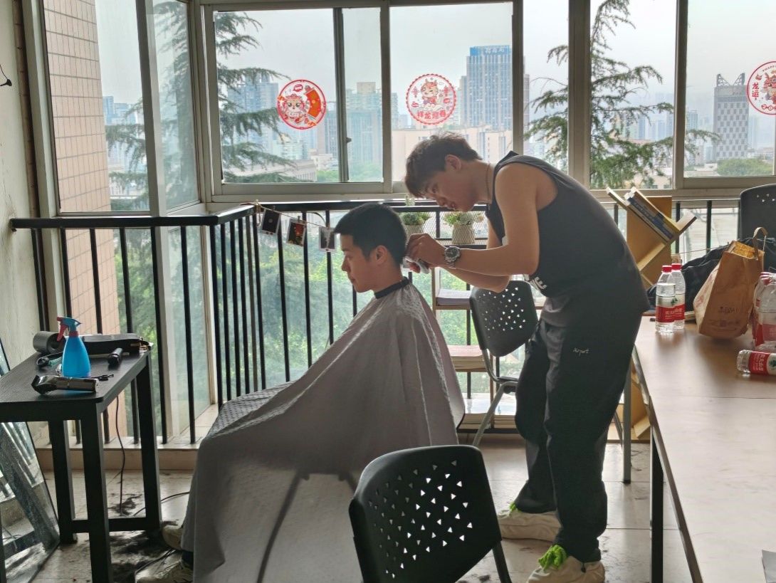 活动地点设置在北2四楼平台处,共吸引了超40名男同学报名参加,除大四同学外,活动参与者也包含了部分大二和大三的同学。通过理发师精湛的技艺,同学们从头“焕”新,纷纷展现出最佳的形象和状态,以自信的身姿应对面试和挑战。来自大四市场营销专业的刘同学首次参与到楼管会此类活动中,他感慨到:“这个活动切实给予了我很大帮助,希望此类活动以后能够长期举办”。