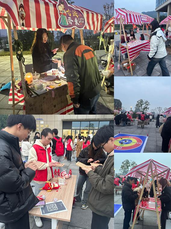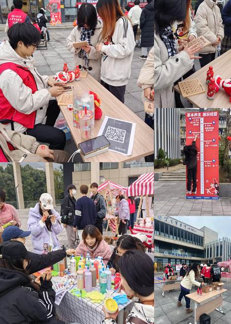 此次活动将传统养生知识与创意元素巧妙融合,设置了趣味跳高、沙包投掷、击碎负能量挑战、勇闯华容道等互动游戏,吸引了超过300名学子参与,活动现场气氛热烈。此外,针织手作、古法香薰、非遗漆扇、彩泥塑形、首饰编制等创意摊位琳琅满目,来自不同学院的30余名学生化身摊主,展现了青年大学生的文化创新和创造活力。