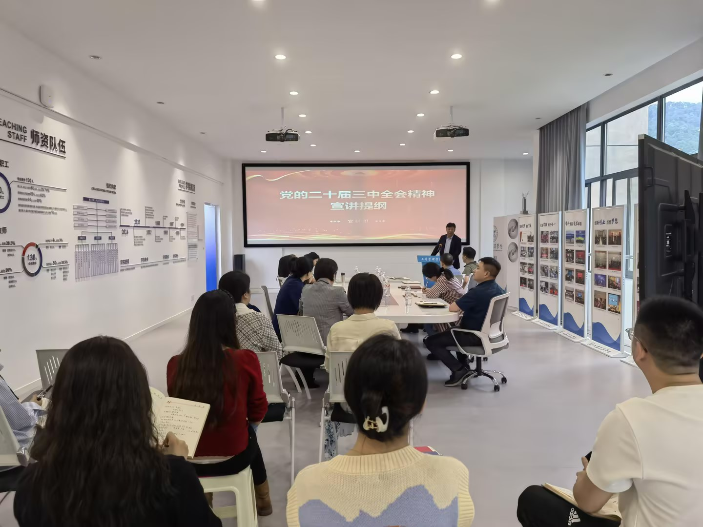 宣讲会上,杨柏副校长从把握全会重大意义;深入学习领会习近平总书记在党的二十届三中全会上的重要讲话精神;全面准确理解《决定》提出的进一步全面深化改革的重大举措;贯通学习习近平总书记对重庆改革工作的系列重要指示要求,加快打造全面深化改革先行区;全力以赴抓好全会精神贯彻落实等5个方面,对全会精神作了全面宣讲和深入阐释。随后,杨校长重点围绕校情院貌对学科专业发展、区域经济发展、半岛局势、经济体制改革做了深入浅出的阐释,并结合商工融合新时代教育高质量发展的要求进行了细致的分析。