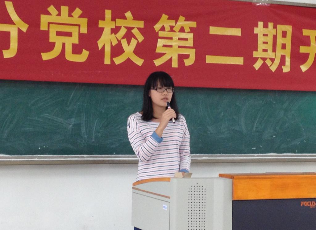 “我希望能通过这次学习能有所提高,将来为学校、为祖国、为社会尽一份力。”在党校学员代表发言时,陈丽娟同学如是说。此外,在发言的过程中,她还表明了认真学习党课的决心以及对党课的重视,希望自己及同学们能在党课中有所收获,不断完善自己。继学员代表发言之后,尹建平副书记对学员们作讲话,他表示,青年一代是祖国的未来,也是党的事业的接班人,因此,应明确所担负的责任,希望这次党课能给同学们带来收获,同时,尹书记也希望入党积极分子能珍惜此次培训的机会,早日跨入党的大门。