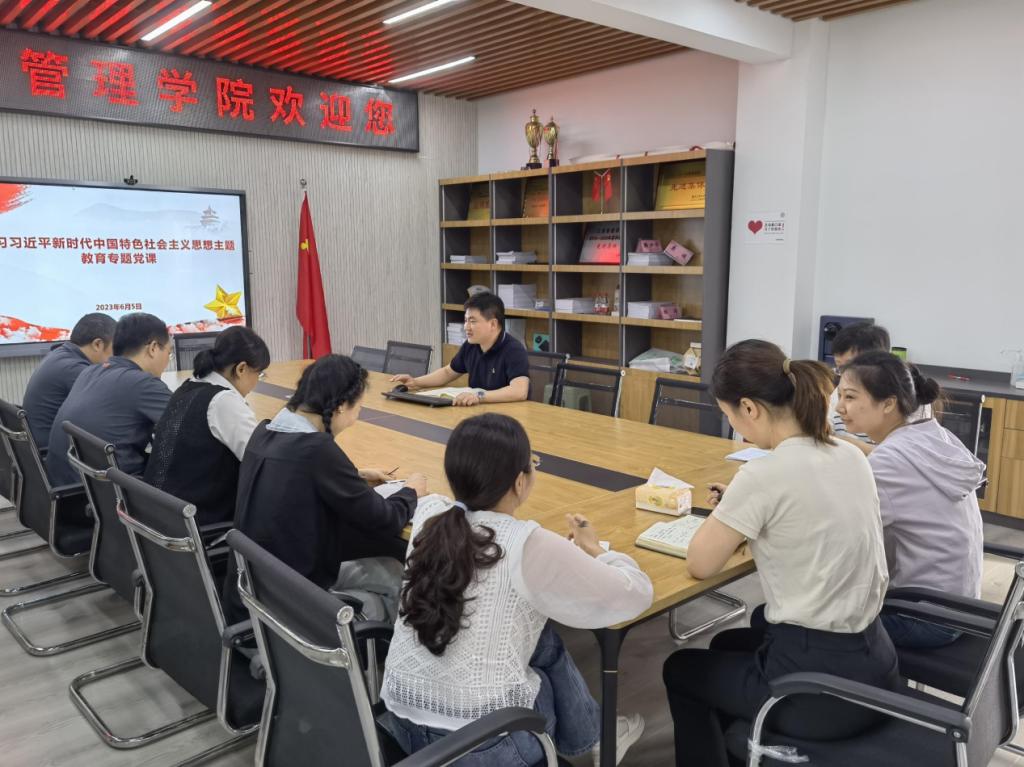 为扎实推进开展学习贯彻习近平新时代中国特色社会主义思想主题教育,6月5日,122cc太阳集成游戏副院长陈伟同志以“担当奋进守初心、培根铸魂育新人”为题,为学院研究生培养办公室、科研与学科建设办公室、MBA教育中心全体成员及研究生辅导员讲授了主题教育专题党课。