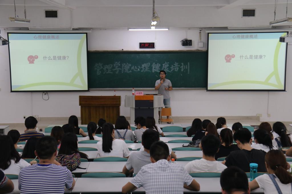 为了加深同学们对心理健康的认识,6月9日下午14:00,管理学院2017年心理健康培训讲座在南岸校区博智楼07121顺利开展,各班级心理联络员、寝室室长参加了讲座。此次讲座有幸邀请到国家二级心理咨询师吴骕騻老师担任主讲人。
