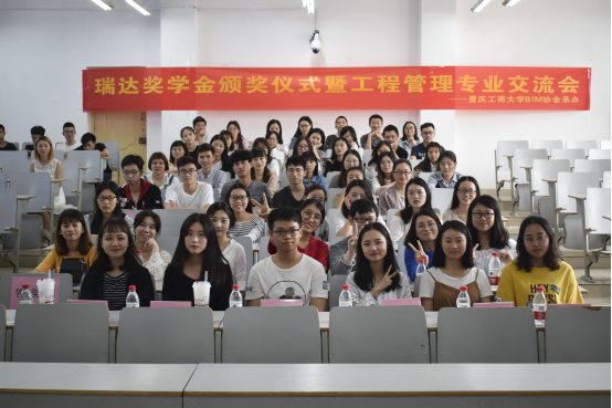 2018年5月4日,管理学院“瑞达”奖学金颁奖仪式暨工程管理专业交流会在博智楼07308教室成功举行。管理学院党总支王建明书记、系主任肖艳老师以及杨涛老师、王子娟老师出席了本次颁奖仪式。除此之外,我院还邀请了重庆瑞达资产评估房地产土地估价有限公司的张琴主任作为颁奖嘉宾亲临现场。