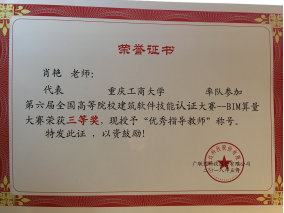 本赛分为广联达BIM钢筋算量GGJ2013、广联达BIM土建算量GCL2013两个科目,采取手工绘制+CAD导图相结合的方式进行工程建模,模拟实际工作场景,钢筋算量与土建算量工程模型互导,快速完成钢筋量和土建工程清单量的计算。在管理学院肖艳老师和肖兵老师的指导带领下,参赛团队与河南大学、厦门理工学院、河北科技大学等176所本科学校进行了激烈地角逐,最终取得《广联达BIM系列软件技能鉴定证书》共计35人次(具体名单见下表),“工程名就”队排名第89位、荣获全国三等奖,肖艳、肖兵老师荣获“优秀指导教师”称号,协会负责人赵娅婷荣获“优秀组织者”称号。