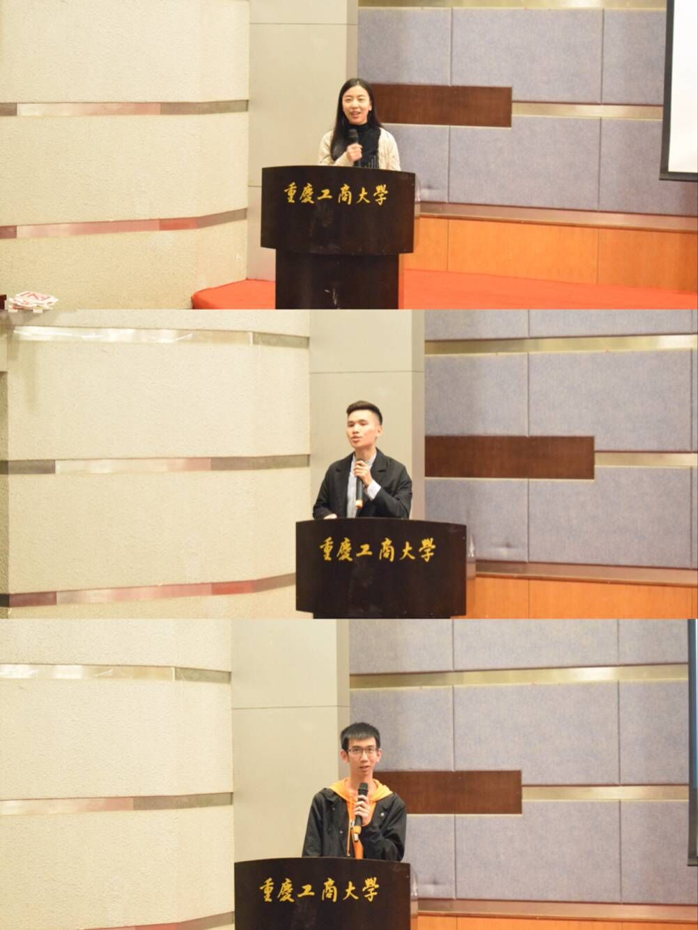 奖学金获奖学生代表蒋瑞与大家分享了自己的学习方法和学习经历,向大家推荐了提高课堂效率的思维导图法,希望大家坚持目标,大胆尝试,过有追求的人生。优秀学生代表杨航则以自己学生干部的身份为同学们做出了榜样,倡导同学们树立正确的政治思想,追求高远的理想信念,要常怀感恩之心,常记父母之情,在确保顺利完成学业的前提下,走出寝室、走出校园积极参与各种实践和活动,将学习和实践结合起来,在为他人服务的同时实现个人的成长。暑期社会实践学生代表张崎磊就暑期“三下乡”社会实践情况进行了总结汇报,并将参加社会实践苦中有乐、付出才有收获的体会和感受与同学们进行了分享,鼓励广大同学积极投身社会实践,做有志向、有担当、有奉献的青年学生。